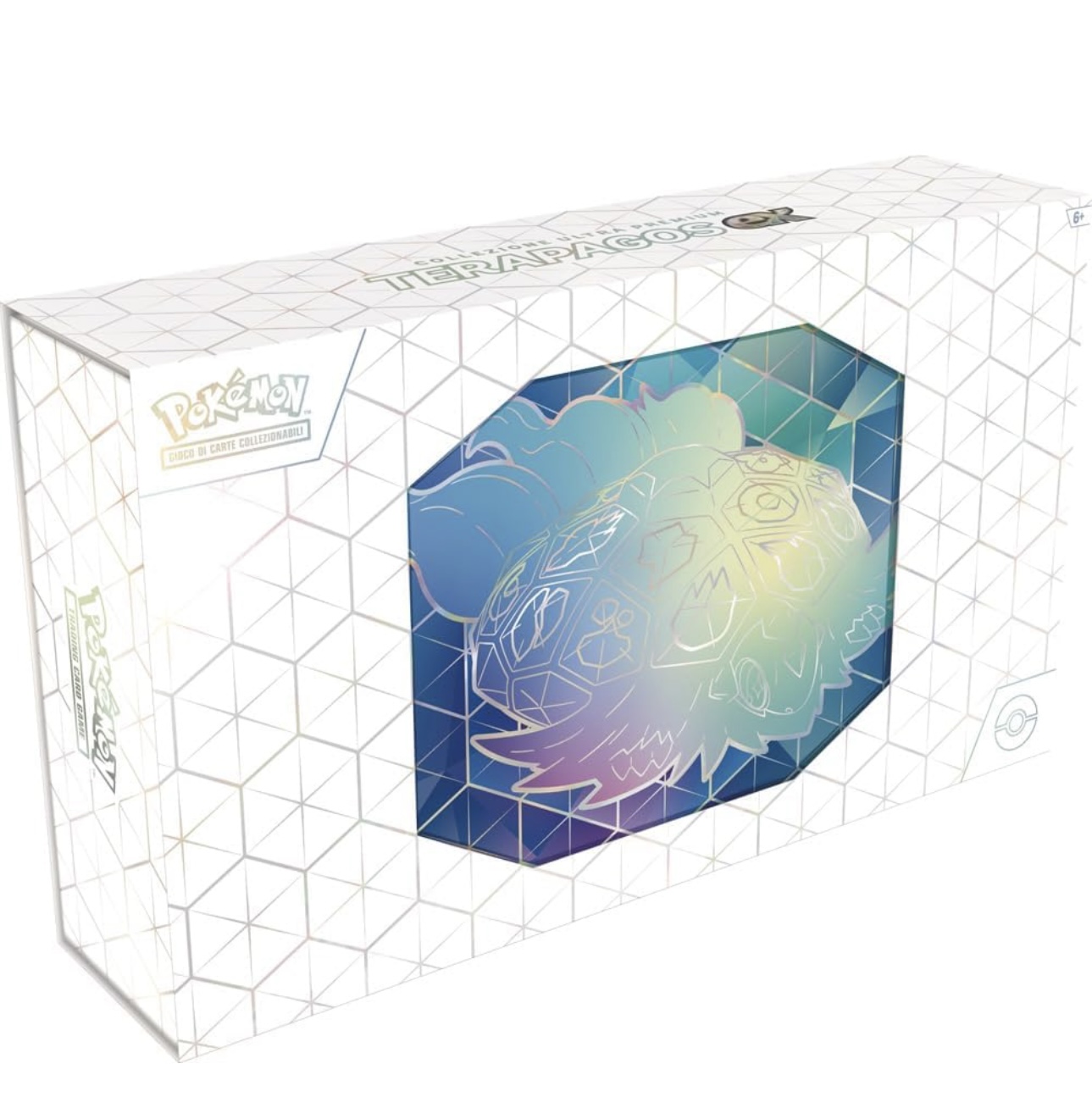 Con il suo guscio scintillante di energia Teracristal, il Pokémon leggendario Terapagos risplende nella sua potentissima Forma Astrale! Ora puoi aggiungere questo misterioso potere ai tuoi mazzi del GCC Pokémon con una carta promozionale olografica di Terapagos-ex, Pokémon Teracristal Astrale accompagnato da altri due Pokémon-ex Teracristal con gli stessi poteri. In questa collezione, degna di un vero tesoro, troverai anche vari accessori di gioco, delle buste di espansione e persino un intero set di carte Energia base con un trattamento olografico che ricorda un cristallo.