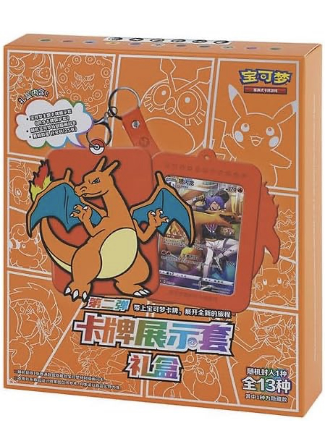 Versione cinese 1 Scheda promozionale tra una delle 13 disponibili & suono portachiavi associato (modelli casuali) 1 Booster Jumbo da 25 carte